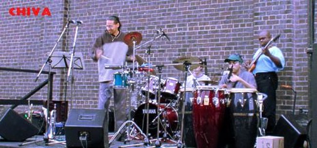 "Stacked with all-star musicians, CHIVA - under the leadership of Colombian conguero Ruben 'Beny' Esguerra - uses Colombian traditional melodies, and seductive rhythms from across South America mixed with jazz harmonies, improvised solos and urban textues like hip-hop, drum'n'bass and R'n'B. All under trumpeter Brownman Ali's unique instrumental arranging touch, CHIVA is a one-of-a-kind, extraordinarily highly energized latin-jazz group." - JazzWorldOnline.com | |