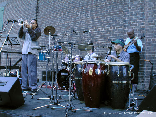 a killin' funk bassist, an award-winning latin-jazz trumpet player, a deeply rhyhmic jazz pianist and a DMC turntable champion... have them play Colombian traditional melodies & rhythms slathered in jazz harmonies... then mix in urban hip-hop grooves and slammin' soloists... What have you? ![]() Afro-Colombian latin-jazz meets deep urban groove. Ruben